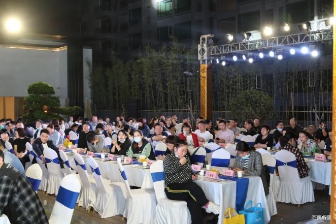 经销商晚宴当日晚6时许,以【乘“圣”跨越】为主题的,公海555000jcjc集团集团第45届国际家具展接待晚宴暨2020年度优秀经销商颁奖盛典,在营销中心四楼景观花园隆重举行,来自全国各地的经销商朋友欢聚一堂,共同分享一场精彩纷呈的晚宴。